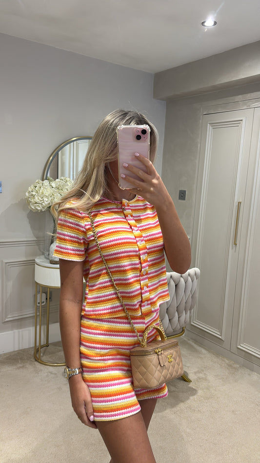 Sold outStripe button up short set