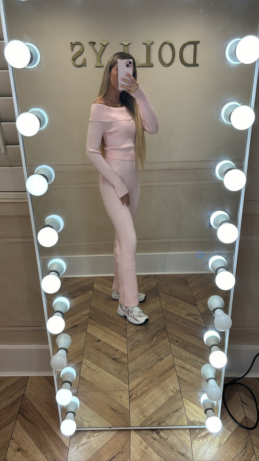 Sold outRibbed off the shoulder lounge set