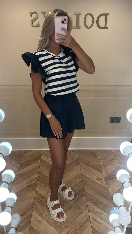 Sold outStripe ruffle short set